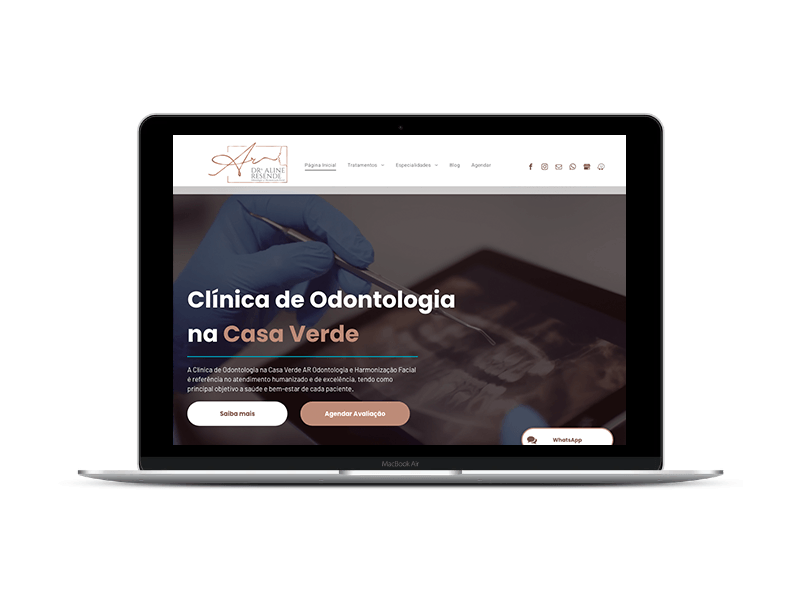 Exemplo de site de cirurgião de odontologia que chegou na primeira página do Google em 24hrs. Conheça o site da clínica Dra. Aline Resende, de Odontologia na Casa Verde.